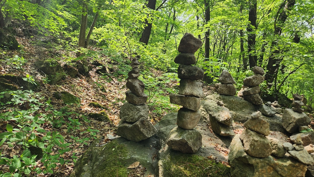 소원을 비는 돌탑은 그냥 넘어가지를 않습니다. 새로 쌓으려고 하길래 돌 한 개당 소원을 하나 빌 수 있다고 장난처럼 말하니 어떻게든 하나라도 더 쌓겠다고 안간힘을 씁니다. 소원이 뭐냐고 물으니 따로 답을 해주지는 않네요.