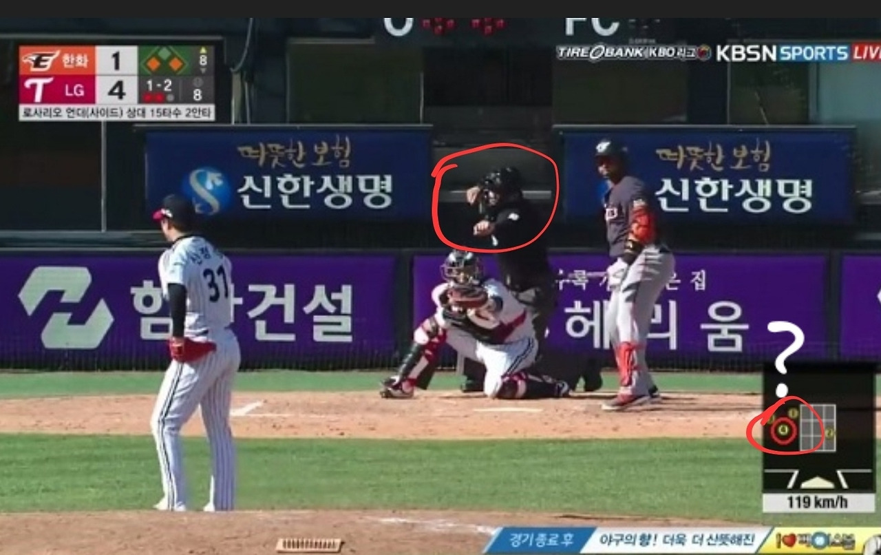완전히 벗어난 공을 스트라이크로 판정하는 심판