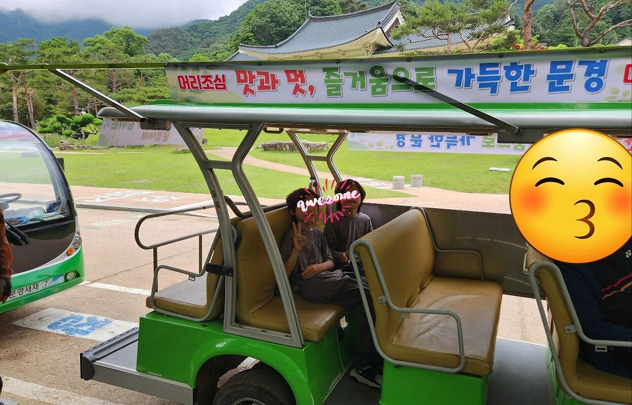 주차를 한 뒤 안내소까지 가니 아기자기하게 생긴 전동차가 하나 있습니다. 아이들 입장에서 이런 건 못 참죠. 전동차를 타고 꽤 많은 거리를 깊숙한 곳까지 올라갑니다.