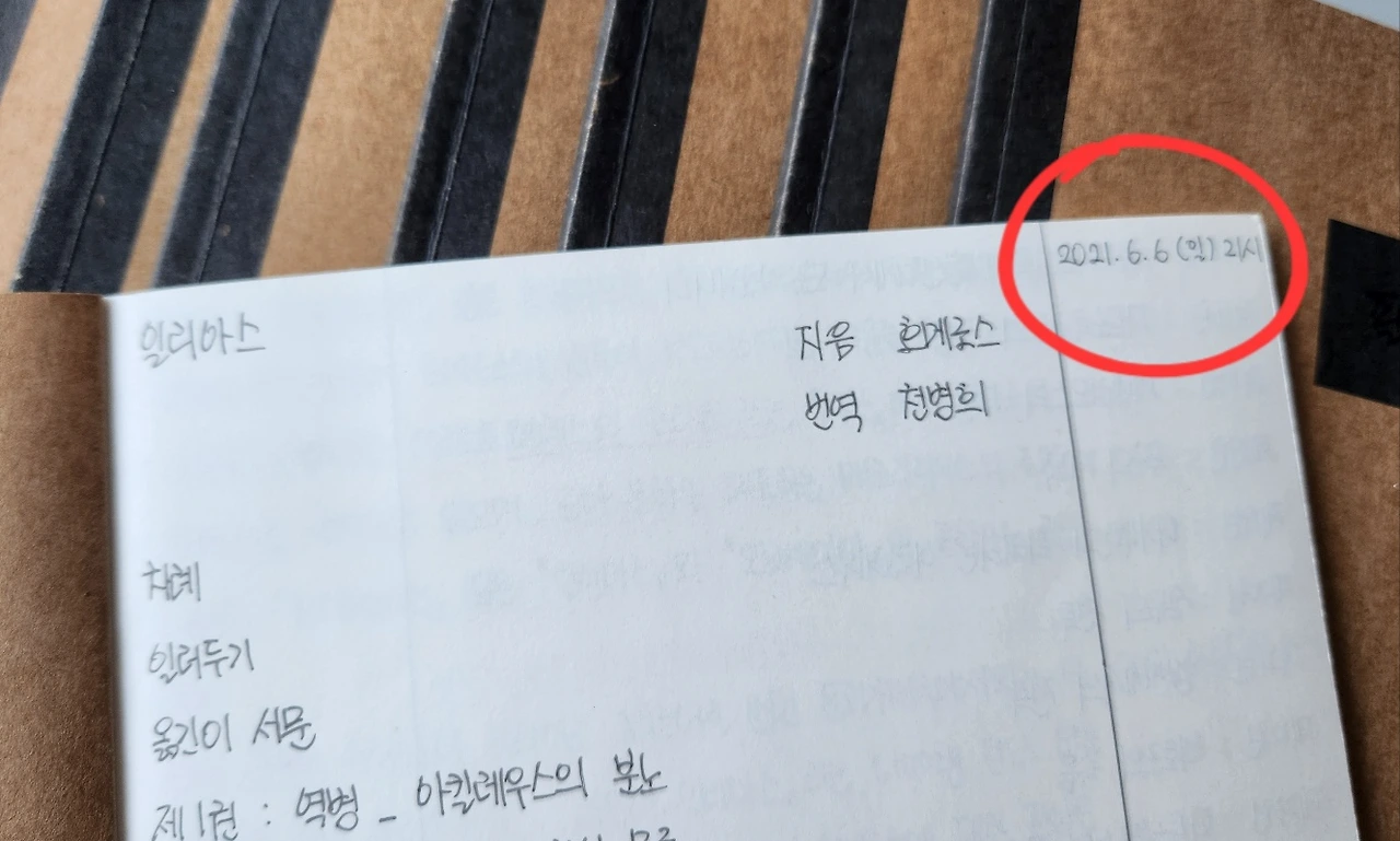며칠 전에 제 필사인생에 크나큰 이정표를 하나 세웠습니다. 호메로스의 장편 서사시인 <일리아스>의 필사를 모두 마친 것이죠.