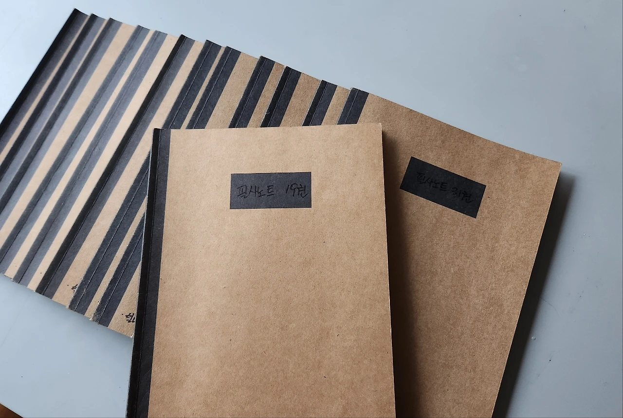 아이들에게도 일리아스를 필사하느라 쌓인 공책을 보여주니 감탄을 합니다. 아이들에게 뭔가 해냈다는 걸 보여주는 효과가 제가 성장한 것 못지않게 가장 가치 있다는 생각도 해봅니다. 2년 동안 썼던 공책을 휘리릭하고 들춰보니 그동안 제 삶의 변천사도 보이는 듯합니다.