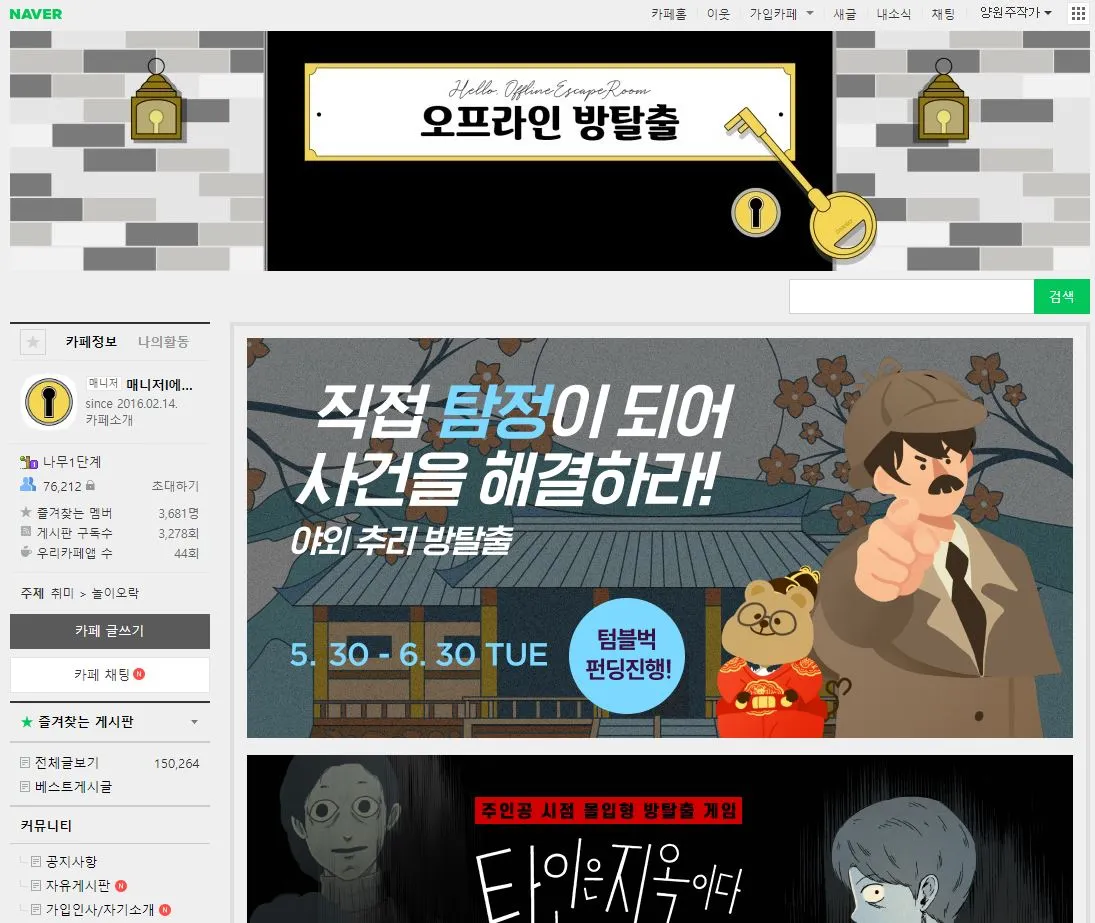 저는 어제 오후에 재미있는 모임에 다녀온 것이죠. 현재 가입되어 있는 방탈출 동호회의 번개가 있어 급히 참여를 하게 되었습니다. 제가 평소 방탈출 카페에 대한 궁금증과 목마름을 가지고 있었지만 주위에 함께 할 만한 사람들이 많지 않았습니다. 그러다 보니 카페를 가입했고 거기에서 평일에 방탈출을 하는 동호회가 또 따로 있다는 것을 알게 되었습니다.