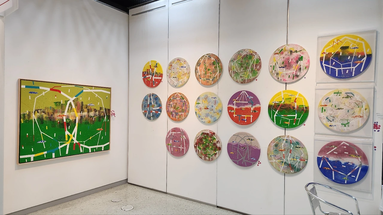 다양한 조형물도 눈길을 사로잡고 회화지만 둥근 모양의 형태를 사용한 작품들도 눈길을 사로잡습니다. 형식이나 틀에 사로잡히지 않는 자유로운 작품들처럼 느껴져서 신선하게 느껴집니다.