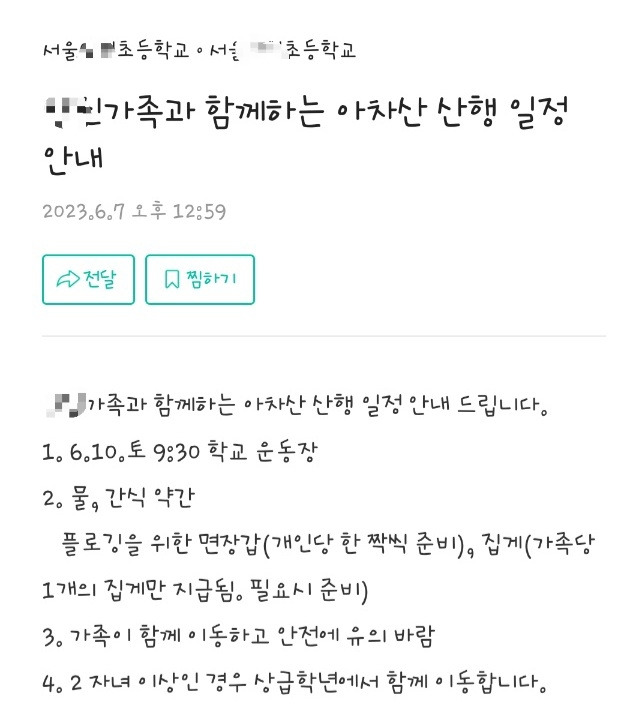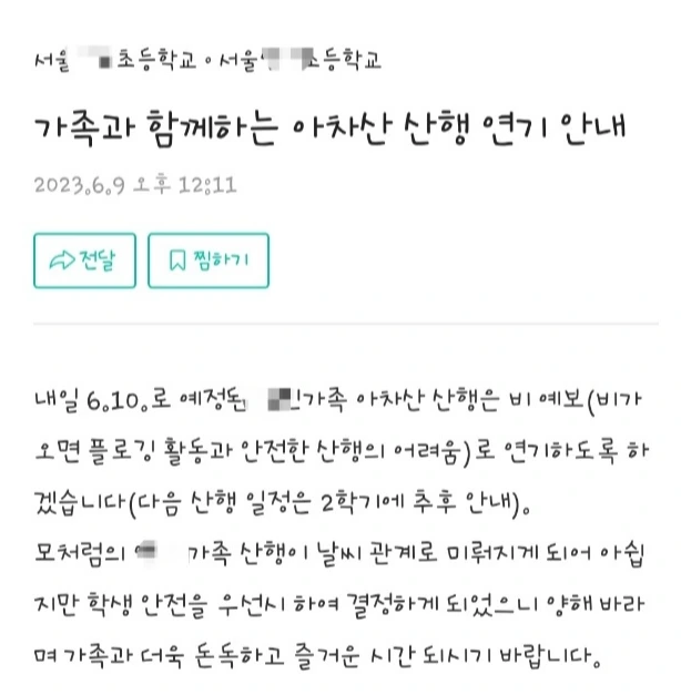 학교에서 발송한 알리미