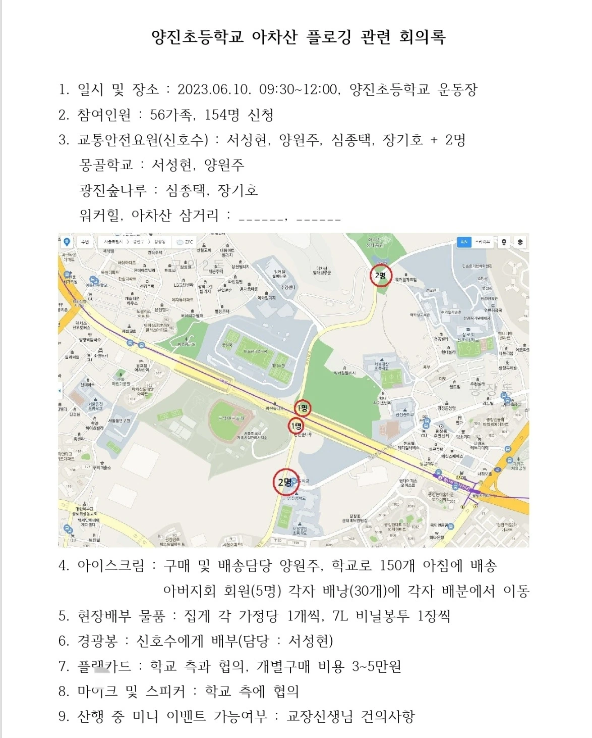 3. 교통안전 요원과 행사진행 인원을 배분하고