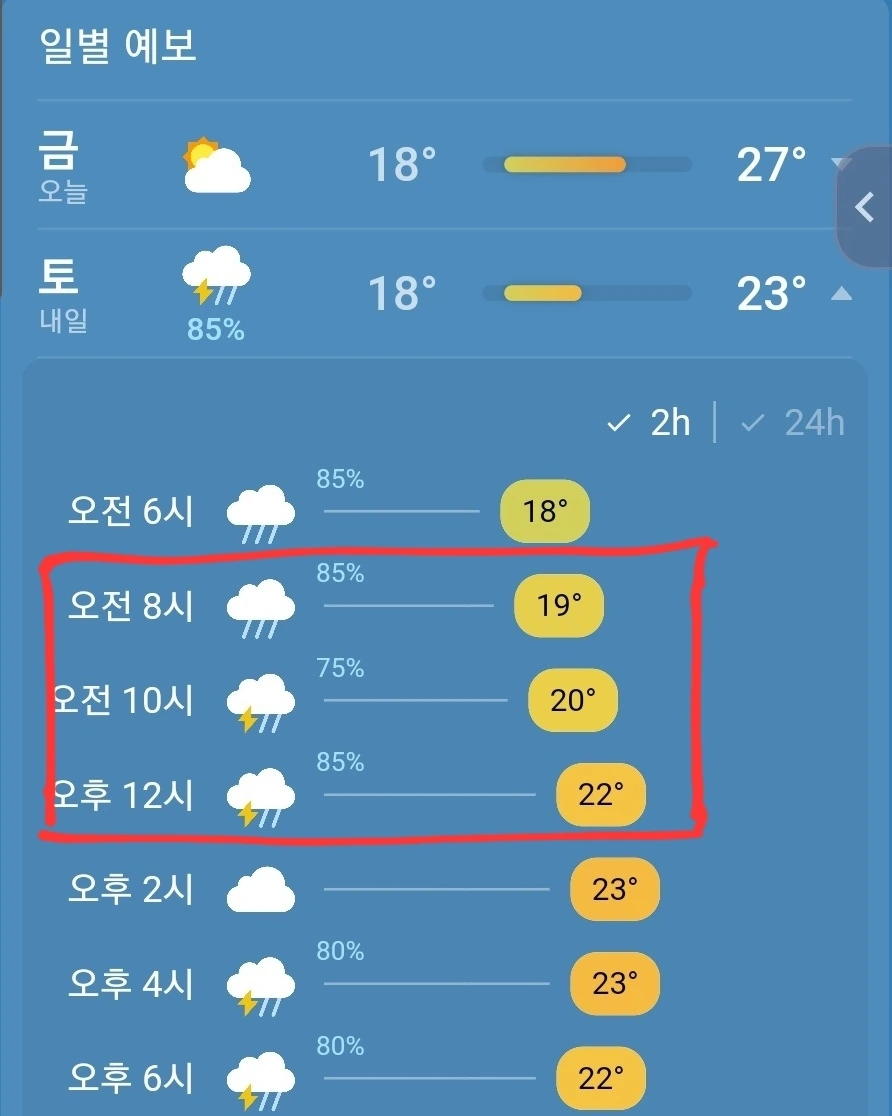 그런데 생각지도 못한 난관이 생기고 말았습니다. 바로 날씨였죠. 행사 당일인 토요일에 비가 예보되어 있었던 것입니다. 수요일부터 계속 날씨를 예의주시하기 시작했습니다.