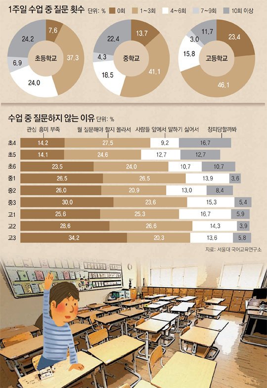 어린 시절에는 수업에도 적극적으로 참여하고 질문도 하던 학생들은 점점 고학년이 될수록 수업 시간에 질문을 하지 않습니다. 그 이유는 네 가지로 압축될 수 있습니다.