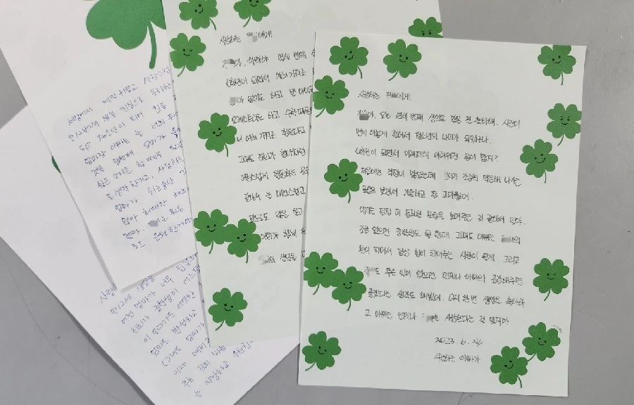 그리고 마지막으로 편지로 아이들의 마음을 달래기로 했습니다. 아빠 2장, 엄마 2장을 썼는데 내용을 비슷하게 쓰지 않으려고 애를 많이 썼습니다.