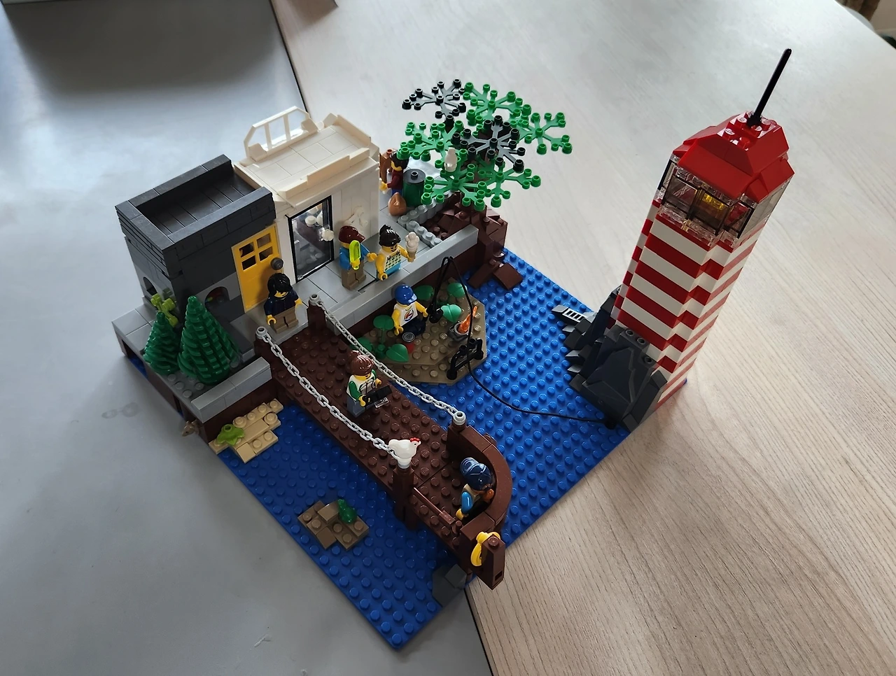 파란 바닥을 바다로 베이스 삼아 등대를