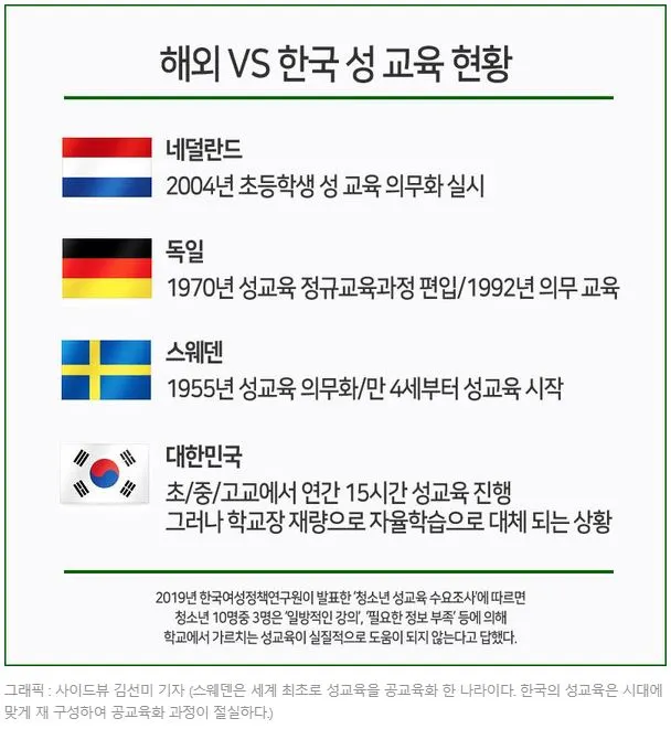 특히 요즘 아이들은 미디어와의 접촉이 폭발적으로 늘어났기에 음란물에 노출될 확률도 그에 따라 높아졌습니다. 그렇기 때문에 그와 관련된 교육도 동시에 중요해졌는데 그 수준이 턱없이 모자랍니다.