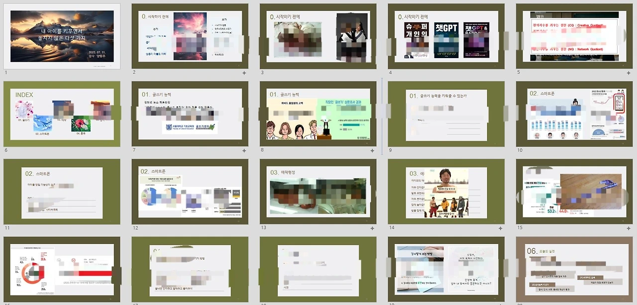 제 소개부터 책 소개를 거친 뒤 아이를 위해 지켜야 할 다섯 가지 중요한 가치에 대해서 열심히 말하면서 강의를 마치고 나니 딱 한 시간이 되더군요. 시간을 넘기지 않아서 정말 다행이었습니다. 분량조절을 실패하는 것도 강의평가에 감점요소이기 때문입니다.