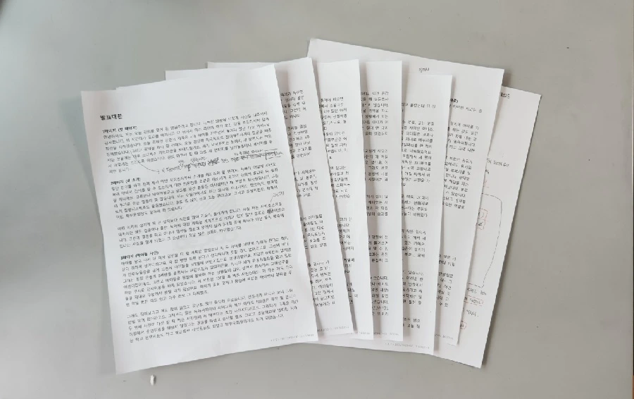 그렇게 대본을 만들다 보니 한글파일로 총 14페이지가 나오는 것이 아니겠어요. 대본을 작성해 놓으니 안심은 되면서도 너무 많이 소요된 시간에 부담감이 엄습해 왔습니다. 작성된 대본으로 리허설을 하는데 어리바리, 허둥지둥했죠.