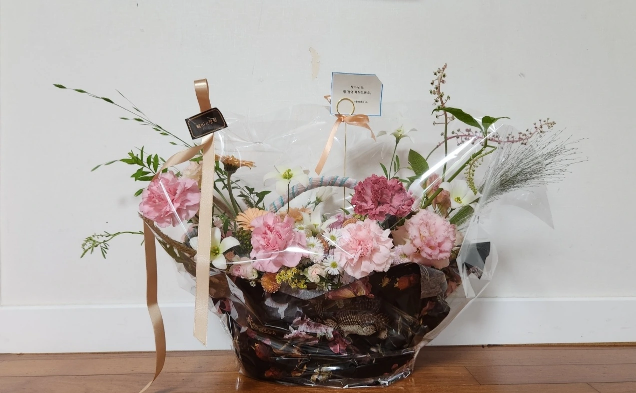그래도 집으로 오니 제수씨가 첫 번째 강의를 축하하기 위해 감사하게도 꽃바구니를 보내주셔서 힘이 났습니다. 가족들도 제가 강의를 순조롭게 준비할 수 있도록 많이 도와주었고요.