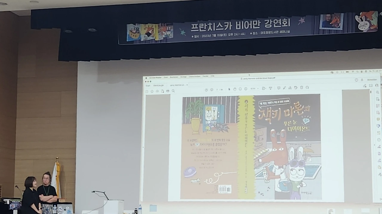 어제 저는 아이들과 함께 정말 귀한 경험을 했습니다. 바로 <책 먹는 여우>와 <잭키 마론 시리즈>를 탄생시킨 독일의 프란치스카 비어만 작가님을 만나러 가게 된 것이죠.