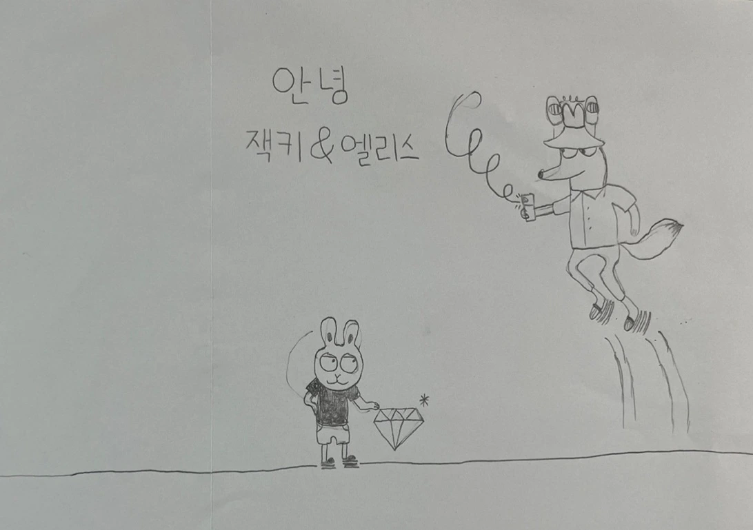 이어진 과정은 실제로 본인이 그림을 그리는 과정을 시연하면서 아이들에게도 해보게끔 하는 유익한 시간이었습니다. 그동안 우리가 책으로만 봐왔던 여우가 어떤 순서대로 그려지는지 알 수 있고 또 직접 해보는 소중한 경험이었습니다.