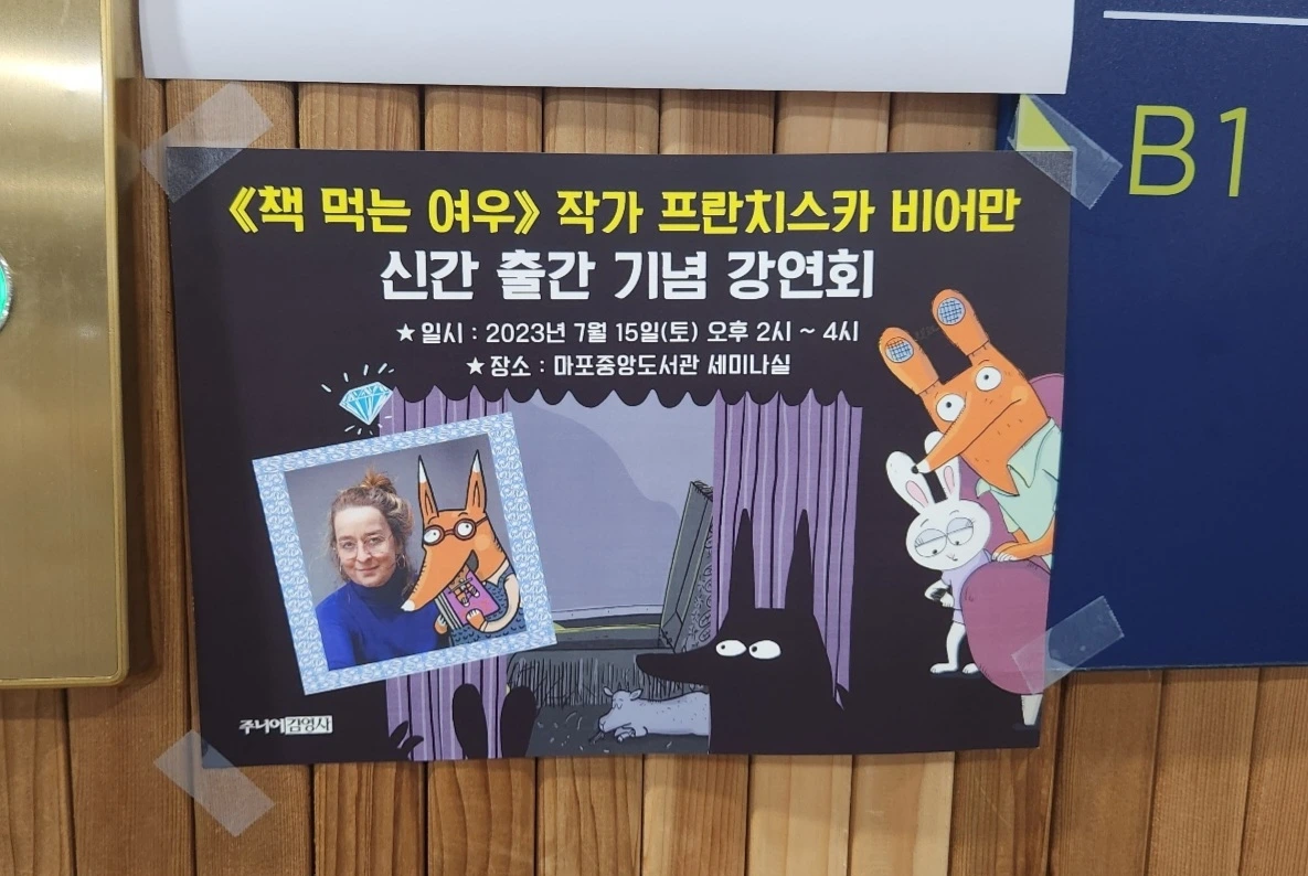 워낙 한국에서의 <책 먹는 여우> 시리즈의 인기가 높다 보니 이런 행사가 진행된 모양이었습니다. 메시지를 보자마자 일단 아이들에게 물을 시간도 없이 신청을 했습니다. 다행히도 아이들도 흔쾌히 함께 가겠다며 동의를 했습니다. 아이들이 태어나서 스스로 가장 재미있게 읽었던 첫 책이 바로 이 책이었고 집에도 이 작가님의 시리즈가 꽤 많았으니까요.