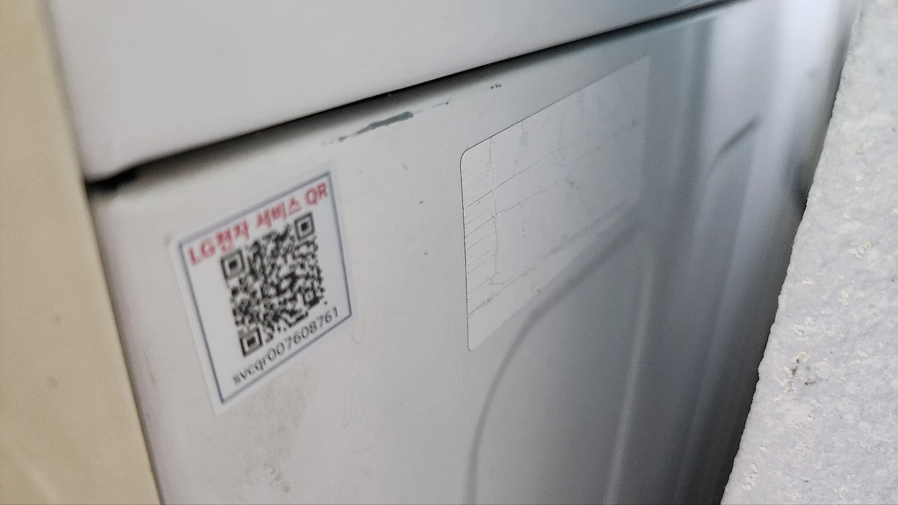 다음 날 기사님이 약속된 시간에 방문을 하셨습니다. 세탁기 우측에 모델명과 제조년월일이 스티커 형식으로 붙어있다고 하시던데 다시 확인했는데 없더라고요. 너무 오래되어 소멸되어 버렸던 것입니다.