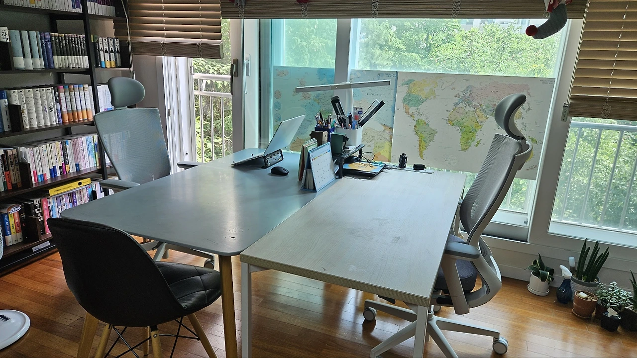 저희 집은 아이들의 공부방이 따로 없습니다. 거실에 책상 두 개를 붙여서 의자 세 개를 놓고 사용하는 형태입니다. 그런데 야금야금 아이들의 집중력이 흐트러짐을 느꼈죠. 집중하지 못하는 이유를 알 수 없다고 느끼던 중 장소를 바꿔보고자 마음먹었습니다.