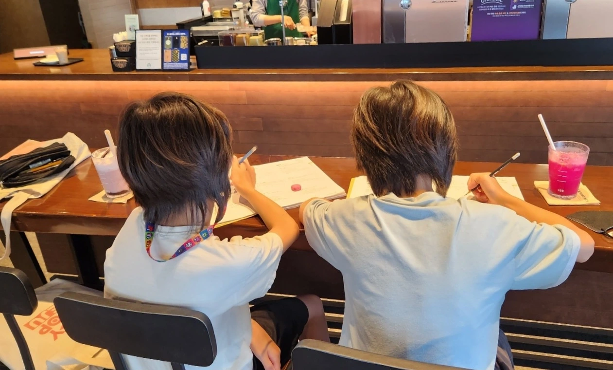 그래서 올초에 한 번 동네 카페로 아이들을 데리고 나갔죠. 일기장을 들고 말이죠. 놀랍게도 아이들이 일기가 너무 잘 써진다고 합니다.