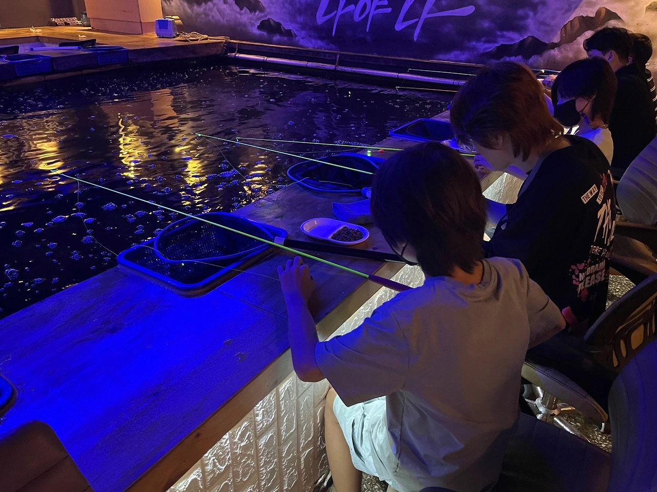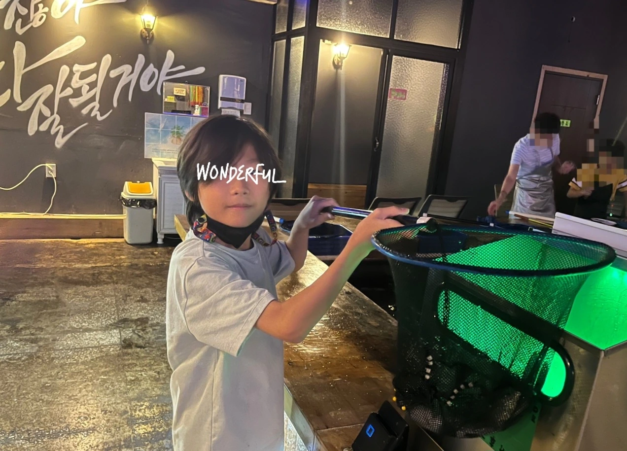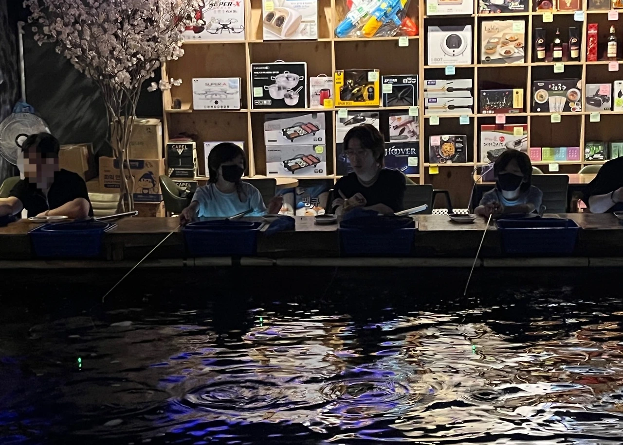 보다 못한 직원분이 자신의 낚싯대로 고기를 낚고 끌어올리기 전의 낚싯대를 아이에게 쥐어주기도 했지만 스스로 낚은 물고기가 아니라며 시큰둥해하는 모습에 더욱 제 마음은 애가 타기 시작했습니다.