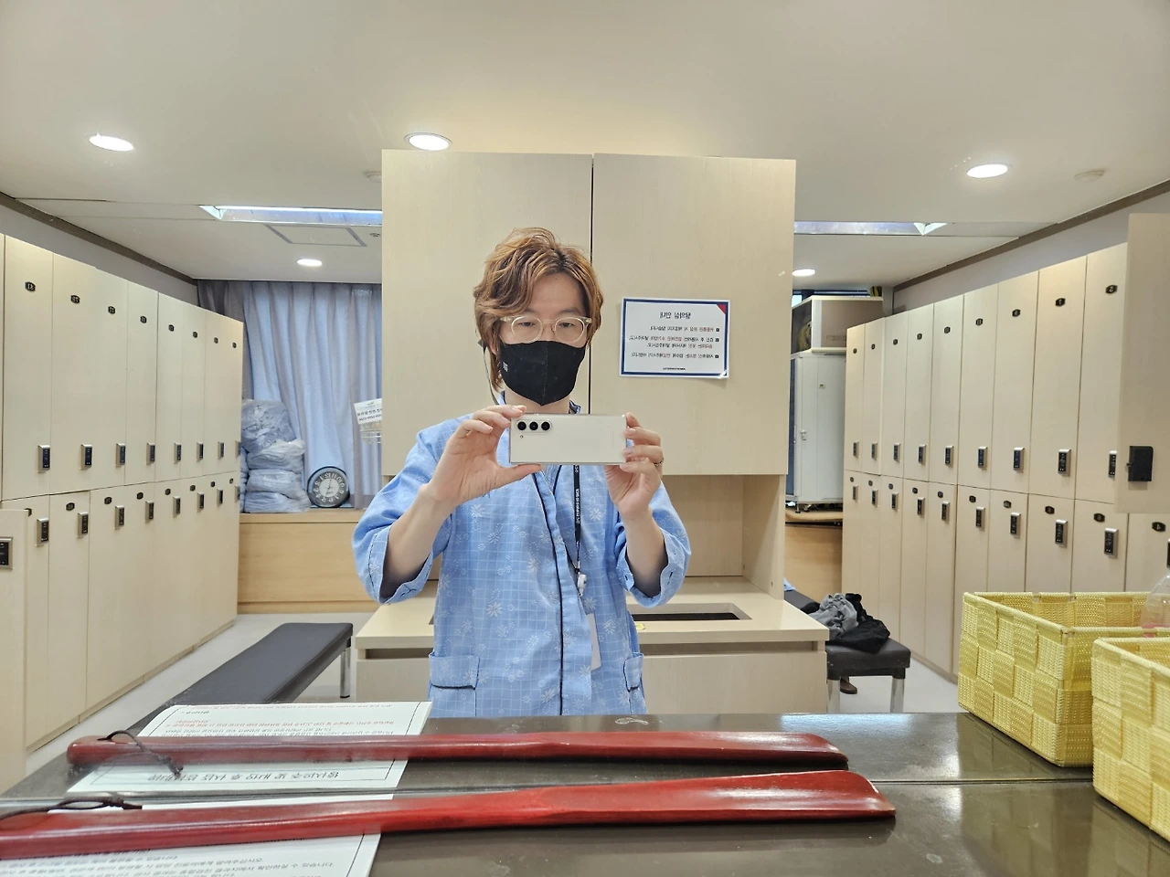다만 탈의실로 와서 거울 보면서 안 하던 짓을 했더라고요. 거울보고 셀카라니... 비몽사몽 간에 저도 별짓을 다했다 싶습니다.