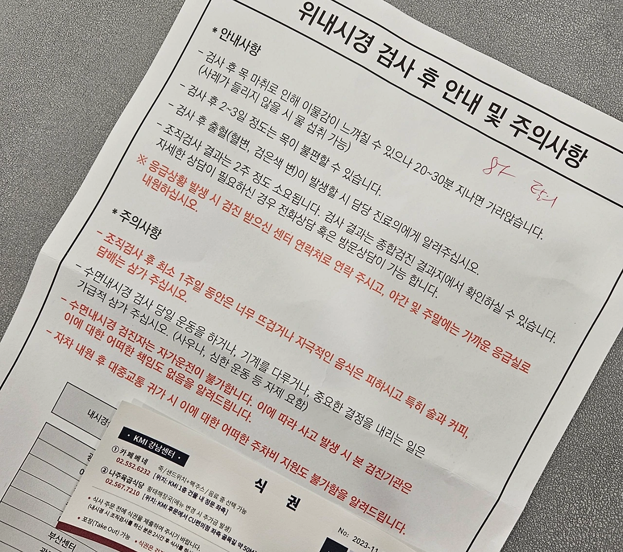 다행히 위내시경을 할 때 특별한 이상징후는 발견되지 않았다고 하니 다행이긴 합니다. 공장처럼 너무 바쁘게 돌아가서 정이 없다는 느낌이 들기도 한 검진이었습니다. 물론 검진센터라면 검사만 잘하면 될 일이죠. 아무쪼록 결과에 큰 문제가 없기를 바라봅니다.