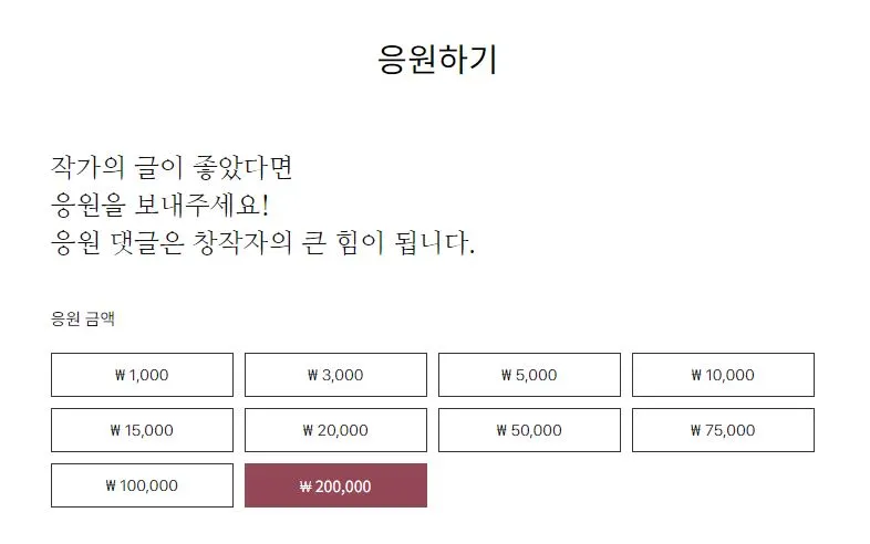 한 줄 요약 : 저 정도의 응원금액을 적용할 거면 그냥 계좌번호를 올리는 건 어떨까요?
