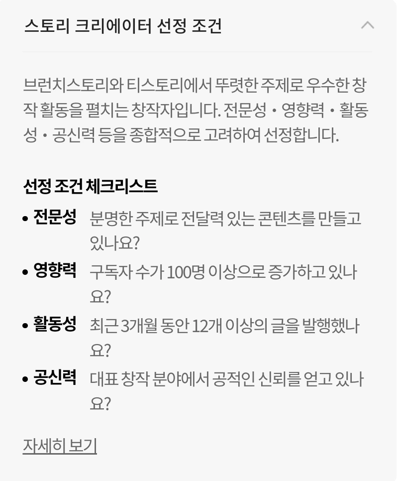 맘대로'처럼 느껴졌다는 점입니다. 제가 느끼기에 충분히 크리에이터의 자격이 충분하다고 생각한 분들은 떨어지시고 의아한 선정도 간혹 보였습니다. 좀 더 전향적으로 선정을 하면 좋지 않았겠냐는 생각이 드는 지점이었죠.