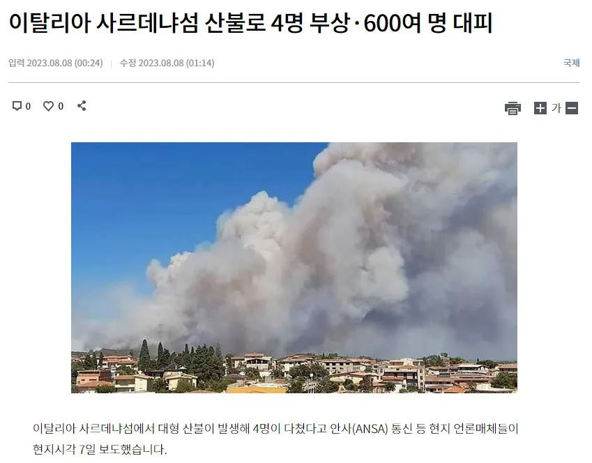 스페인을 비롯해 캐나다에서도 산불은 현재진행 중입니다. 이탈리아와 그리스도 예외는 아닙니다. 호주 역시 지금까지 겪어왔던 산불로 인한 고통이 이루 말할 수 없죠.