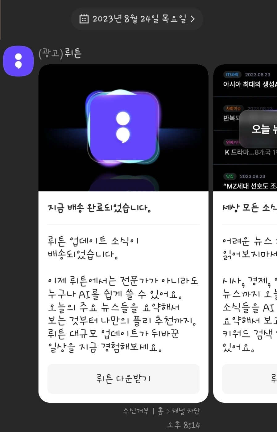 최근에 카카오톡으로 광고메시지가 하나 왔습니다. 대화형 챗봇 프로그램이 업그레이드되어서 돌아왔다고 말이죠. 사실 이 프로그램은 네 달 전에 이미 공개되어 홍보가 된 프로그램이었습니다.