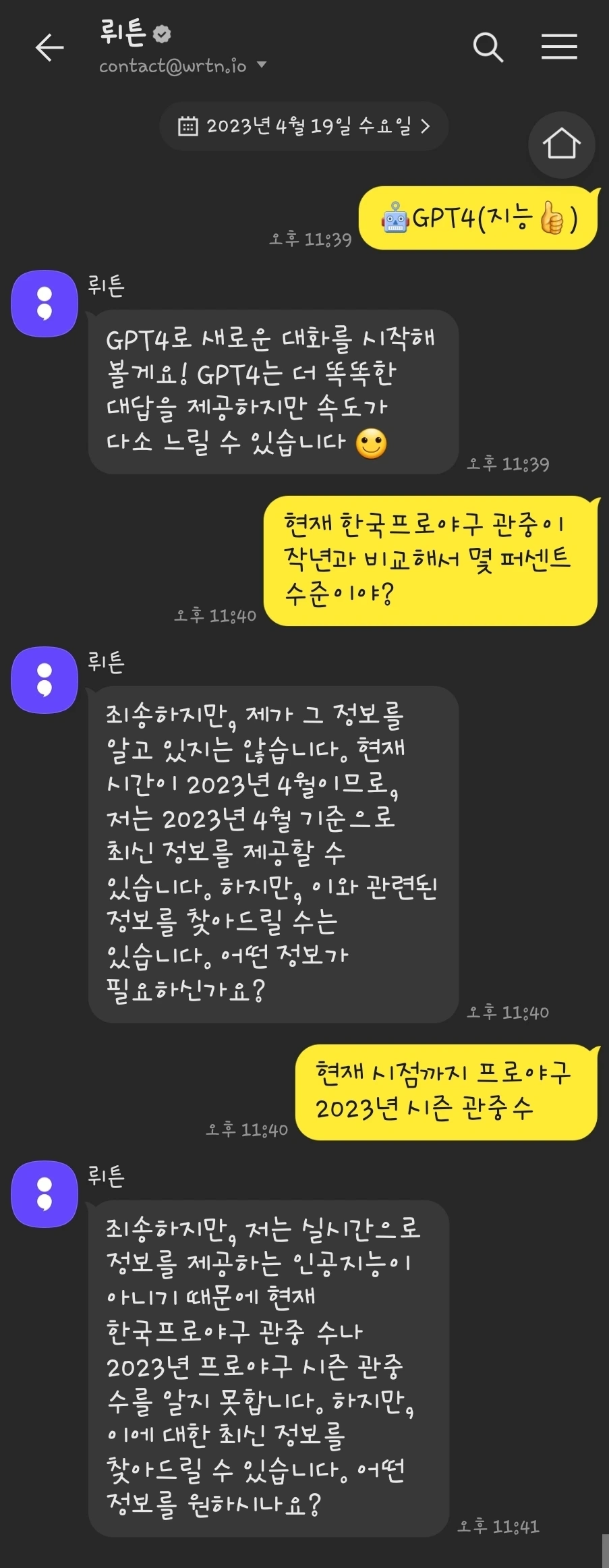 챗 GPT3와 GPT4의 차이는 모르겠습니다만 네 번째 버전이 더 좋겠죠? 기대가 컸던 만큼 아쉬움도 컸습니다.