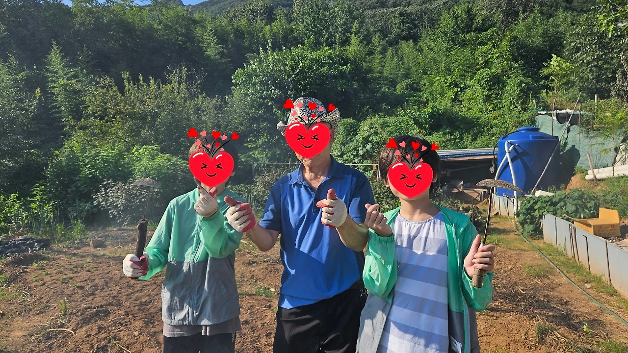 마지막으로 하루를 마무리하면서 농사일에 진심인 남자 세 명이서 기념사진도 한 장 찍었습니다. 저는 농사일에 솔직히 별로 관심이 없어서요.