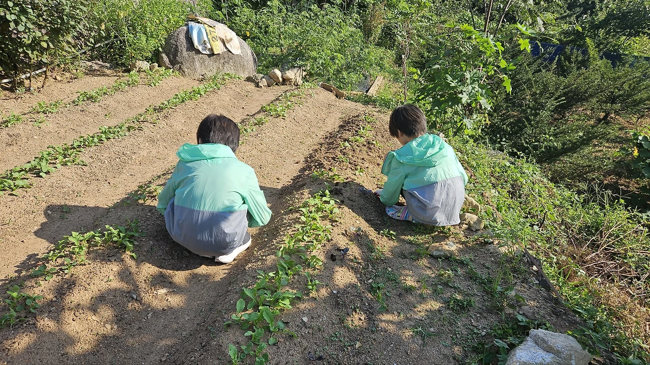 아이들은 그동안 체험하지 못한 시간을 보상이라도 받으려는 듯 무 밭에서 잡초제거 작업도 합니다. 호미를 손에 쥐고 진지한 태도로 작업에 임합니다. 장래희망을 정말 농부로 고민해 볼 생각은 없는지 물어보고 싶은 마음이 굴뚝같습니다.