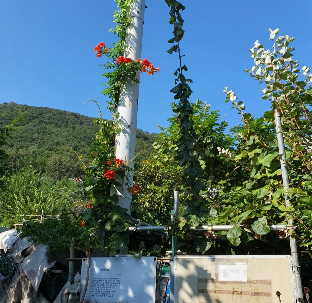 변치 않습니다. 오랜만에 할아버지가 운영하시는 텃밭에 오니 전주에 능소화가 피어 우리를 반