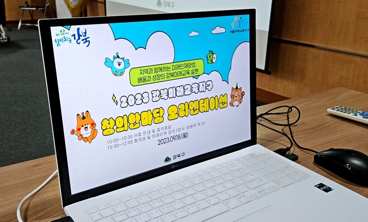 강북구청에서 주관하는 <창의한마당 오리엔테이션>에서였는데요. 창의력과 미래인재에 관한 내용이었는데 제게 많은 도움을 주신 대표님의 추천으로 좋은 기회를 얻게 되었습니다.