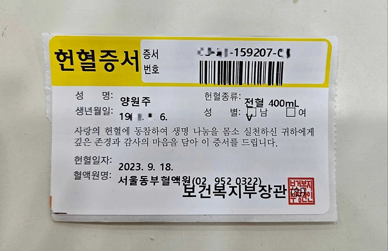 한 줄 요약 : 헌혈을 할 수 있는 건강함이 가지고 있음을 감사합니다.