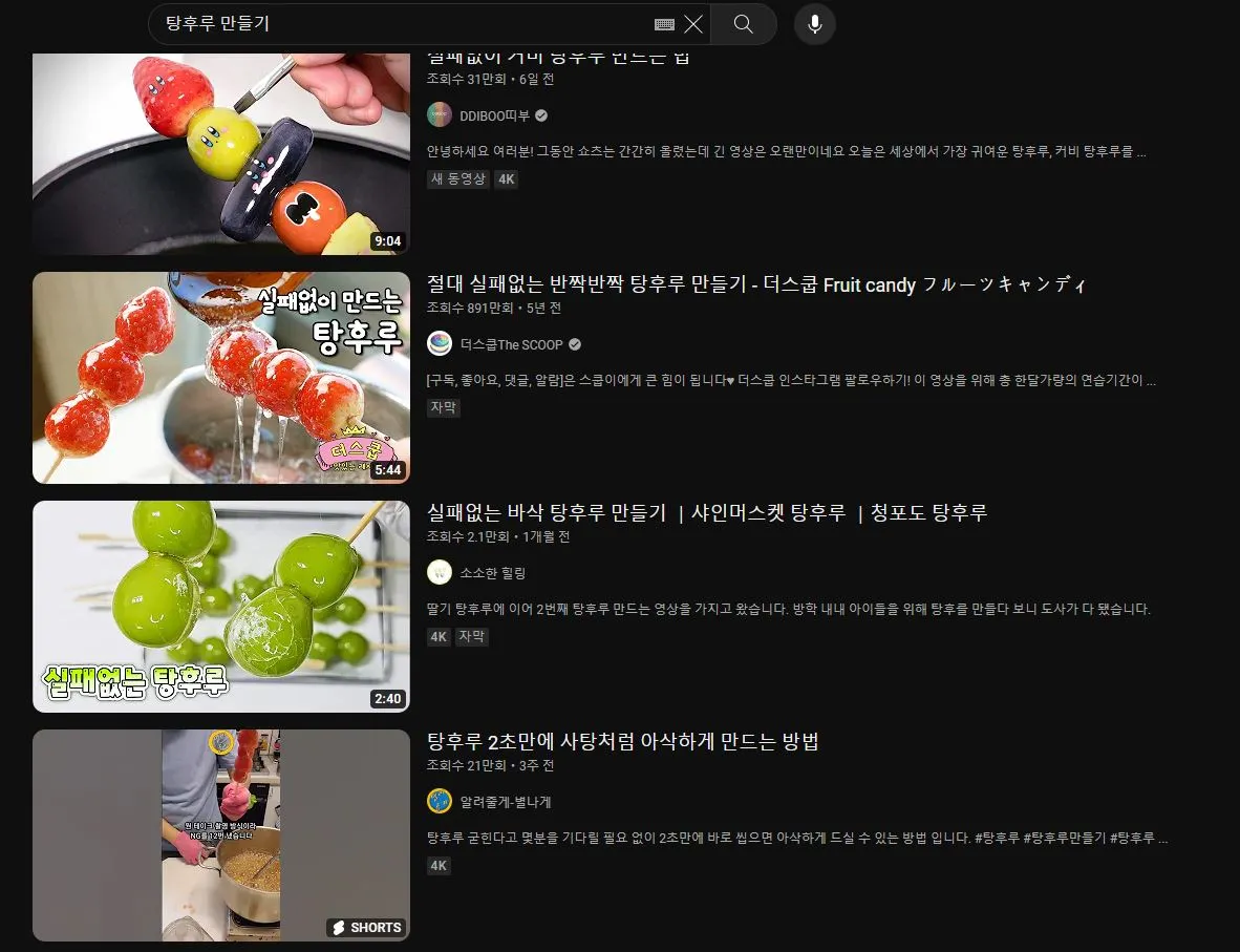 요즘 가장 핫한 간식이라고 하면 아마 탕후루를 빼놓고 이야기할 수는 없을 겁니다. 몇 년 전까지만 해도 듣도 보도 못한 생소했던 음식은 중국 전통 간식임에도 일 년 정도 만에 모르는 사람이 없는 전 국민들에게는 친숙한 간식으로 자리 잡았죠.