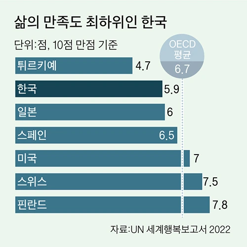 우리나라의 경제규모는 올라간데 반해 행복지수는 더 떨어지고 있고