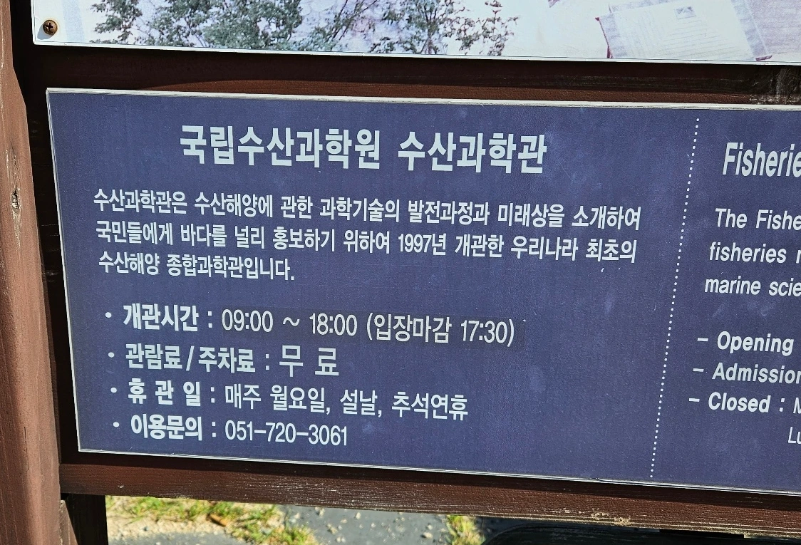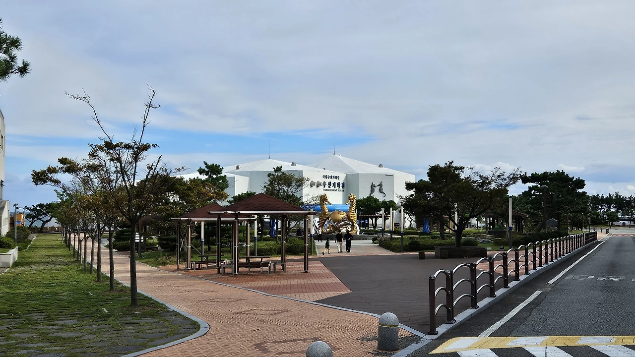 주차장에서 차를 대고 바다방향으로 내려다 보이는 국립수산과학관은 외관이 좀 낡아 보입니다. 옛날 건물 느낌이 물씬 났기에 솔직히 큰 기대를 하지는 않았습니다.