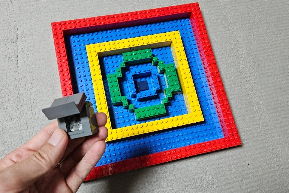 어찌 보면 컬링, 양궁의 방식에 투호가 접목된 놀이라고 볼 수 있겠습니다. 조그만 레고블록이 던질 때마다 생각보다 통통 튀어서 밖으로 튀어나갑니다. 안에 넣기가 쉽지 않았지만 몇 번 해보니 나름대로 요령이 생겨서 재미있었습니다.