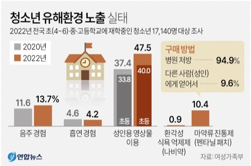 얼마 전까지만 해도 청소년들에게 노출되는 유해환경이란 음주나 흡연, 성인영상물에 국한되었지만 이제는 마약류 진통제 유해환경에까지 노출되어 있습니다. 생각보다 심각한 수치라고 할 수 있습니다.