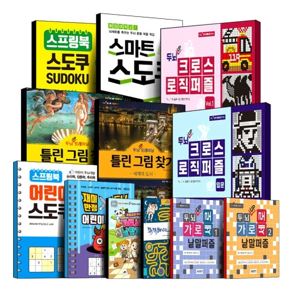 이미 집에는 다양한 종류의 두뇌계발용 퍼즐 책들이 모셔져 있습니다. 사실 처음에는 아이들이 유아 시절일 때 인지능력을 키워주기 위한 용도로 구입했었죠. 공부가 아닌 놀이처럼 접근하게 해서 쏠쏠하게 도움을 얻기도 했습니다. 이제는 크게 필요하지 않게 되었는데 제가 틈틈이 써서 치워야겠습니다.