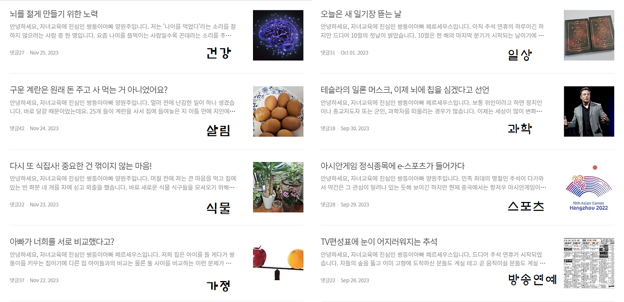 그냥 내버려 둬도 될 법 하지만 문제는 제가 예전에 썼던 글을 참고하려 찾으려면 찾기가 모래사장에서 바늘 찾기 수준이라는 점이었습니다. 내용만 기억나고 제목도 가물가물한 글들은 검색을 해도 나오지 않는 경우가 많았죠.