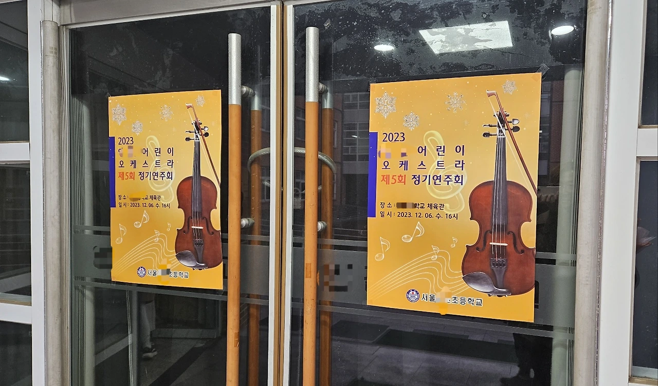 그렇게 대망의 정기연주회까지 오게 되었죠. 예전에는 이런 행사를 치를 때 학부모의 손을 빌려서 했다는데 요즘에는 오케스트라가 학교방과 후 활동에 포함되어 있어서 업체의 지원을 통해서 행사를 치를 수 있었습니다.