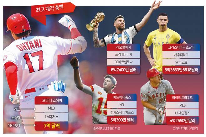 어제 거의 모든 스포츠신문에 대서특필된 소식은 바로 일본 출신 메이저리그 야구선수인 오타니 쇼헤이의 FA 계약 소식이었습니다. 기사 내용만으로도 제 눈을 휘둥그레하기에 충분했죠. 그가 계약한 금액, 10년 7억 달러는 북미스포츠 사상 최고액 계약이었기 때문입니다.
