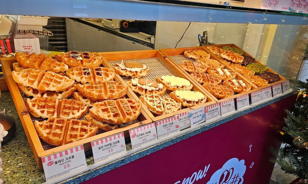 값이 그리 싼 편은 아니었지만 큰맘 먹고 몇 개를 집어듭니다. 혹시나 하는 마음에 다른 메뉴를 기웃거려 봤지만 아이들은 오직 초코크로플만 먹겠다고 하는군요. 마음 같아서는 주는 대로 먹으라고 말하면 편하겠지만 막상 키나 몸무게에 대해 신경을 쓰고 있는 한창 성장기에는 아무래도 그렇게 매몰차게 말하기가 어렵습니다.