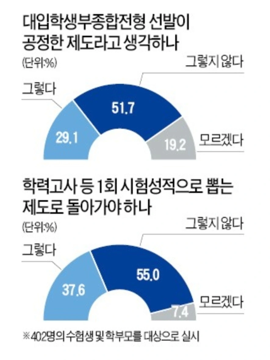 단순히 정시 비중을 늘리기보다는 수시제도의 개수를 줄인다든지 더 공정성이 확보되는 방식을 찾는다든지 말이죠.