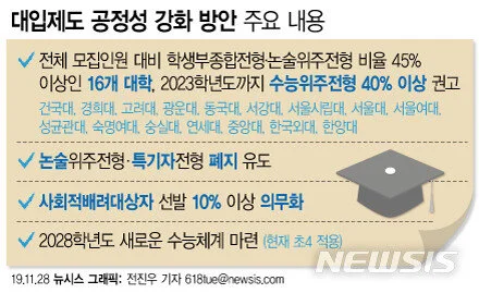 정치권에서도 너도나도 이런 시류에 화답하며 수시제도를 축소하는 분위기가 형성되었습니다.