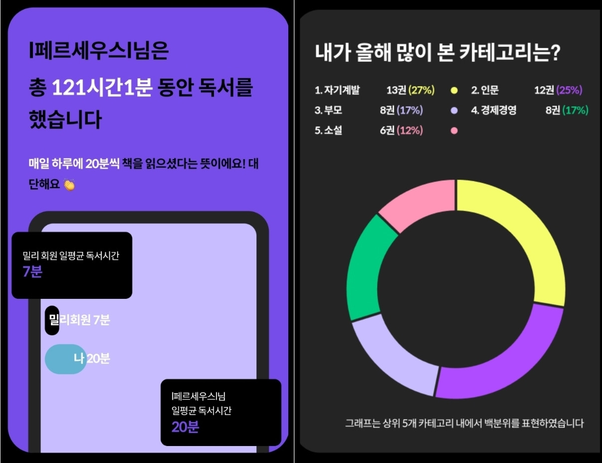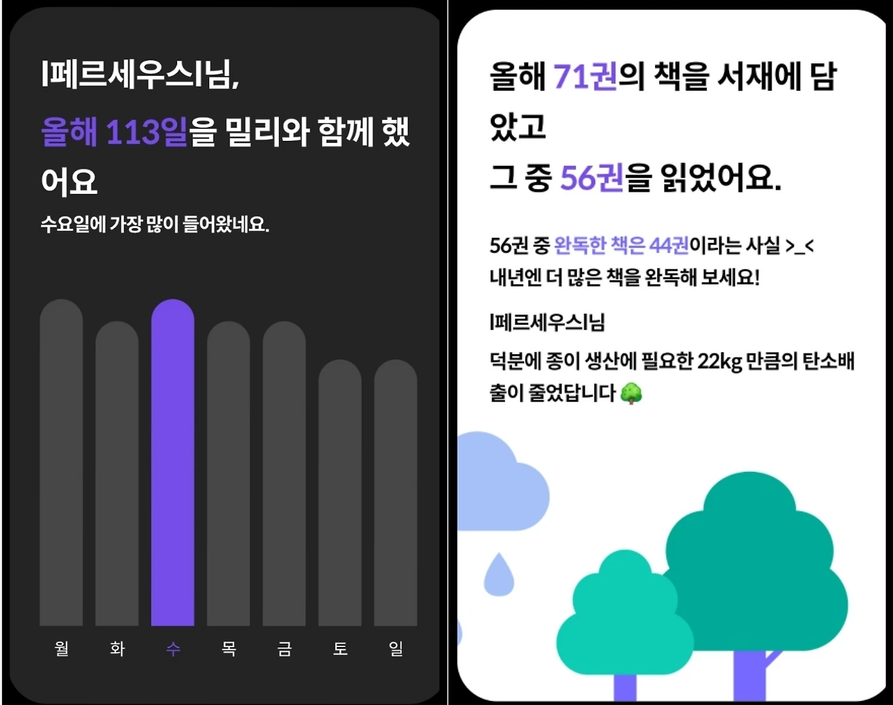 이 아닐까 싶기도 합니다. 밀리의 서재에서도 올해 10월까지의 결산을 해서 사용자들에게 공유를 해