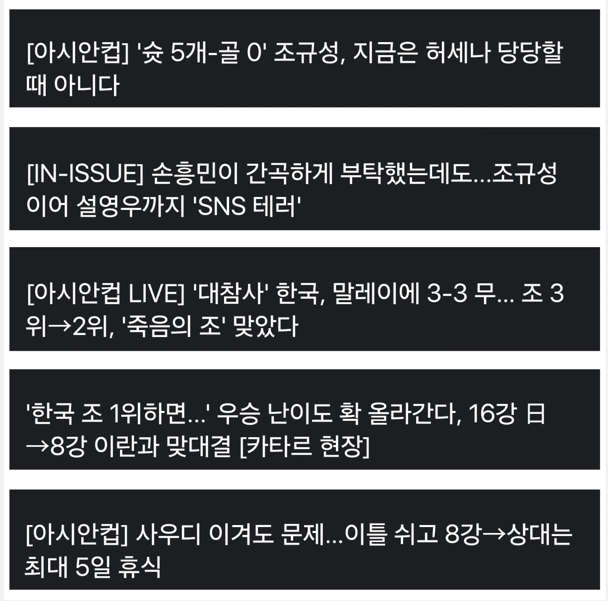 좀 더 성숙된 응원문화 건전한 비판문화가 형성되는 아시안컵이 되길 빕니다. 우리 모두의 정신건강을 위해서라도 말이죠.